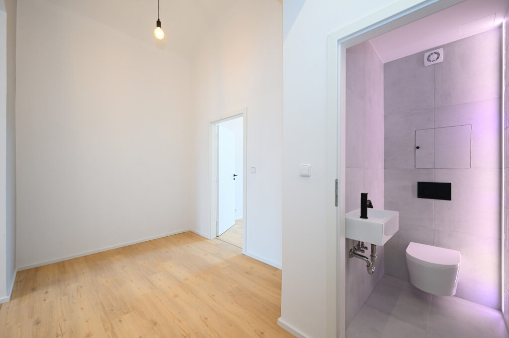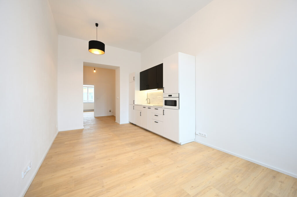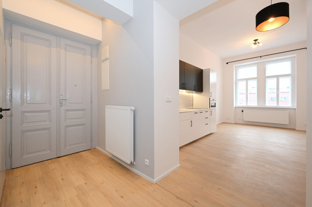 I offer you a newly and modernly renovated 2+kk apartment with an area of approximately 45 m² for long-term rent, located on the 1st floor of a historic brick building without an elevator at the address Nádražní, Prague 5 – Smíchov.